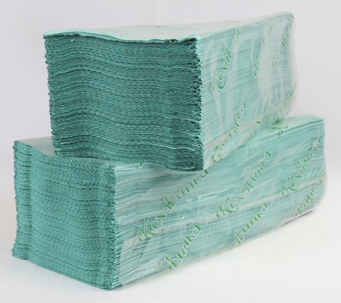 Паперові рушники макулатурні зеленого кольору, одношарові, з V-складанням. В одній упаковці – 170 аркушів. Розмір одного листа складає 23x25 см. Рушники виготовлені з макулатури. Використовуються в готелях, готельно-ресторанних закладах, закладах громадського харчування та інших громадських місцях. Підходять для протирання гладких поверхонь, витирання розлитої рідини та рук. Кількість упаковок у ящику – 25 шт.