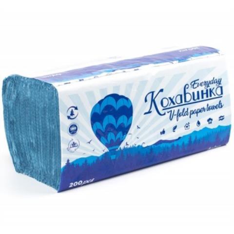 Рушники Кохавинка паперові макулатурні V-подібні 23х25 см 200 аркушів синій kx.50637