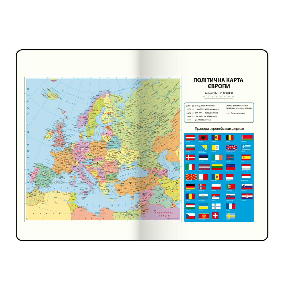 Карти України та Європи на форзацах.