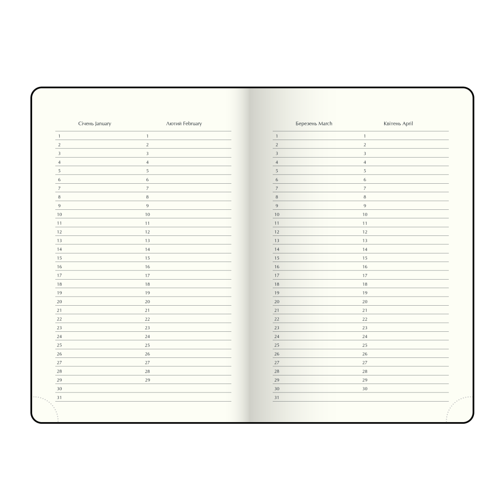 Недатований формат поєднує переваги класичного планера, але не обмежує користувача жорсткою прив’язкою до дат, дозволяючи вести записи у довільному порядку.