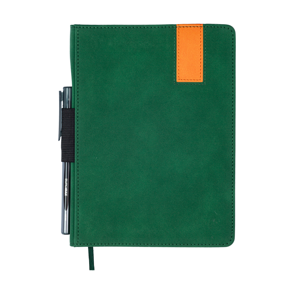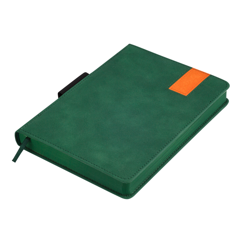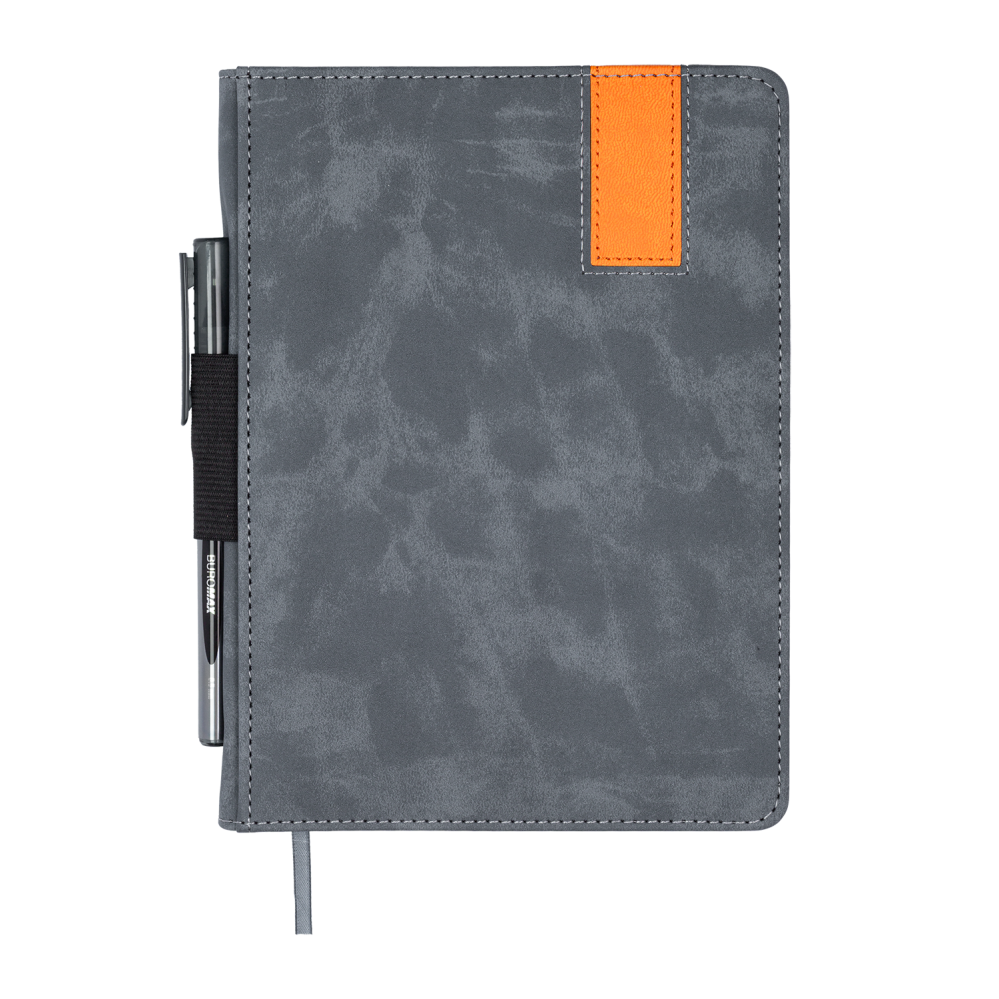 Щоденник BUROMAX BEST формату А5 має гнучку обкладинку зі штучної шкіри з бархатистою фактурою soft-touch. Поперечна кругла резинка акуратно фіксується на металевих шильдах по краях обкладинки та надійно утримує щоденник у закритому стані. Завершує дизайн тонований у колір обкладинки зріз внутрішнього блока.