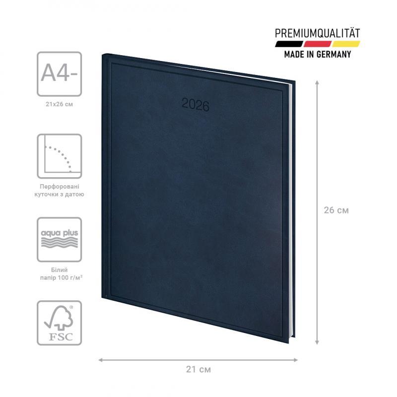 Витончені кремові форзаци та обкладинка Torino насиченого синього кольору зі сліпим тисненням додають щоденнику елегантності та професійного вигляду.