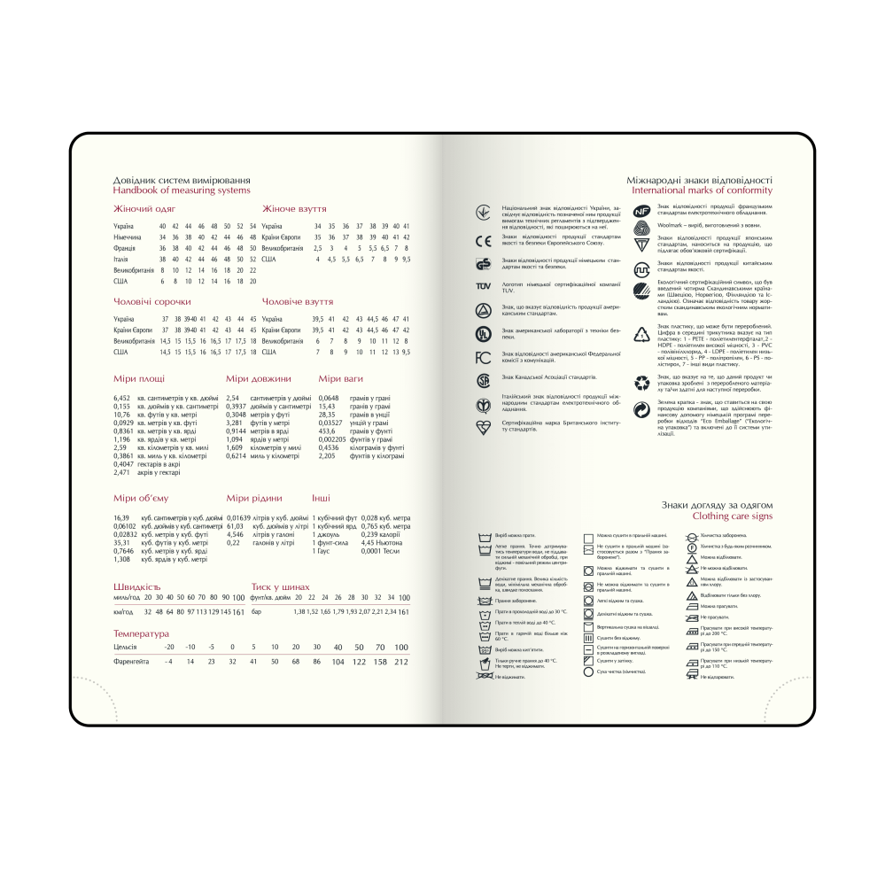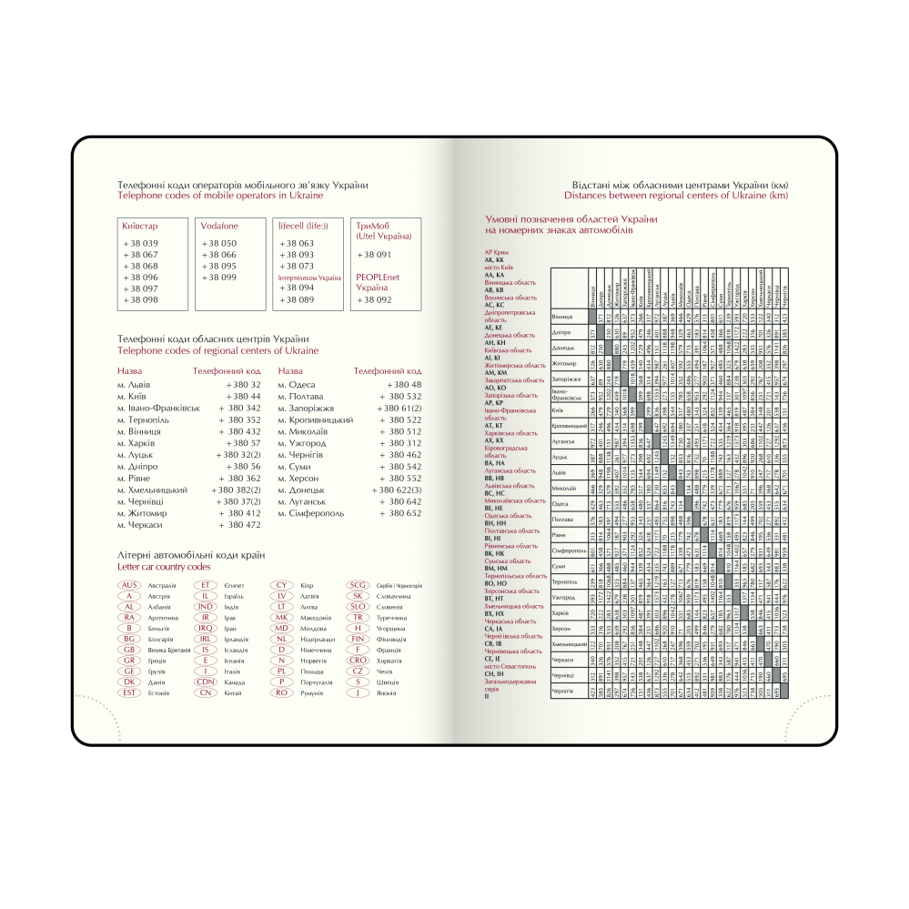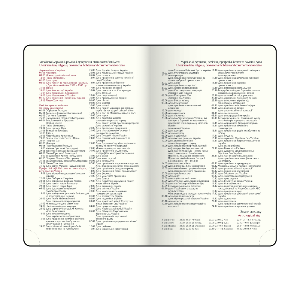 Інформаційно-довідковий блок: національні, релігійні, професійні свята та пам'ятні дати, знаки зодіаку, телефонні коди операторів мобільного зв'язку та обласних центрів України, літерні автомобільні коди країн, таблиця відстаней між обласними центрами України, Посібник з вимірювальних систем, міжнародні знаки відповідності, знаки догляду за одягом;
