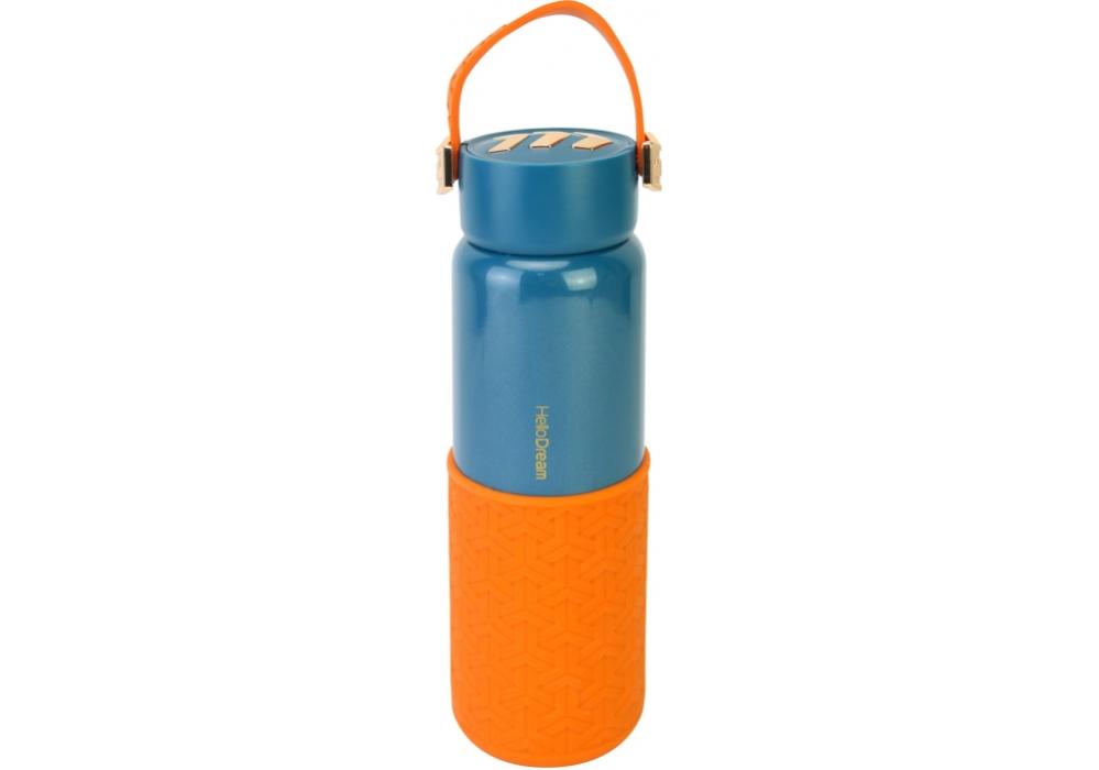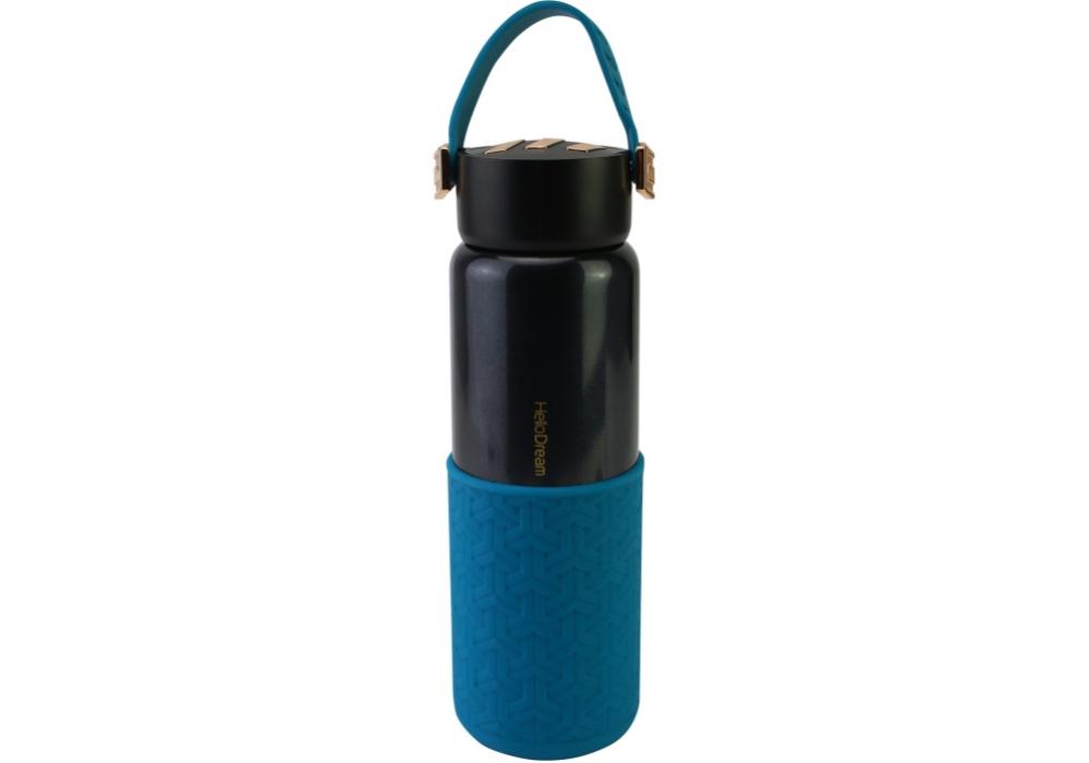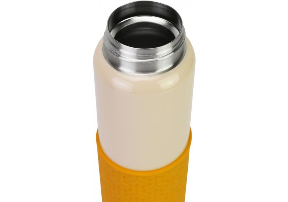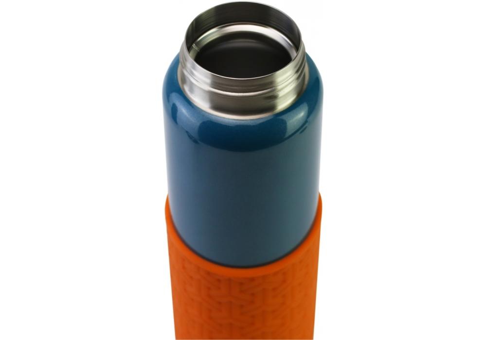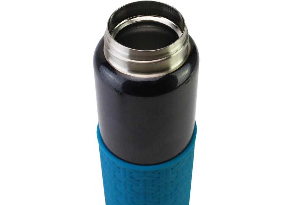 Герметична кришка запобігає проливанню напоїв навіть під час активного руху. Кришку легко відкривати та надійно закривати. Корпус оснащений силіконовою вставкою, яка забезпечує зручне та впевнене утримання пляшки в руці. Виріб ефективно зберігає температуру напоїв тривалий час: гарячі напої залишаються гарячими в діапазоні 45–95 °C до 6 годин, а холодні — надовго зберігають прохолоду. Матеріал корпусу — нержавіюча сталь, покриття — поліпропілен і силікон.