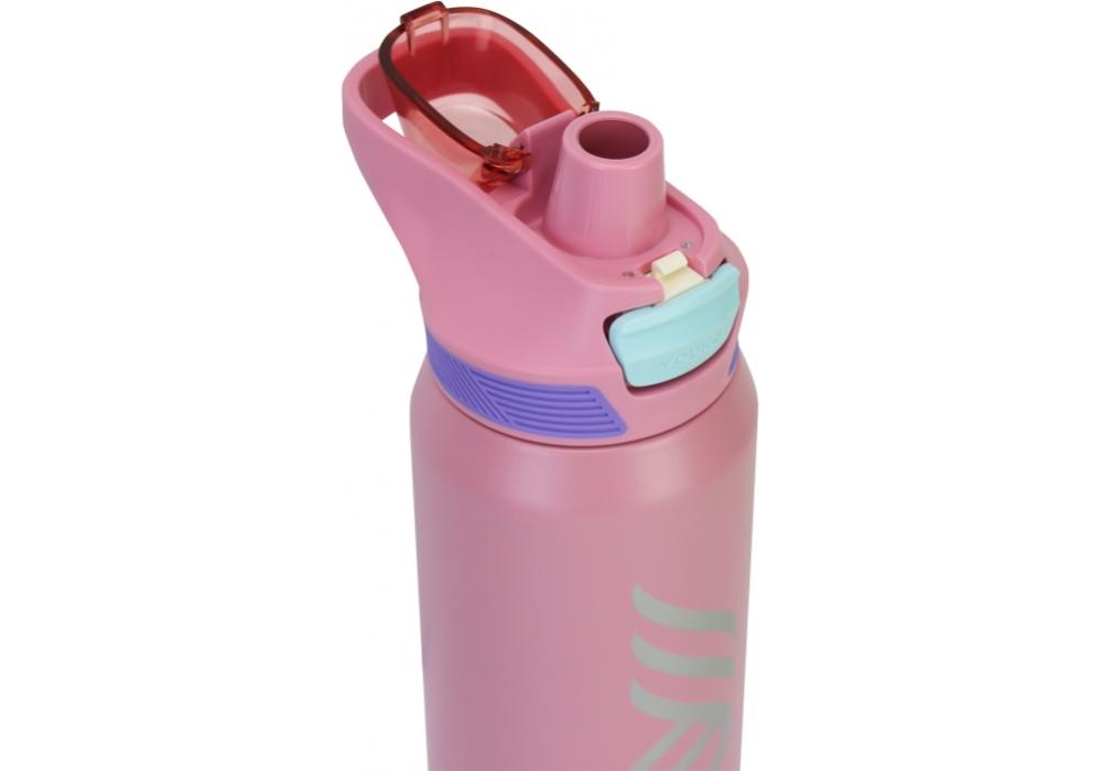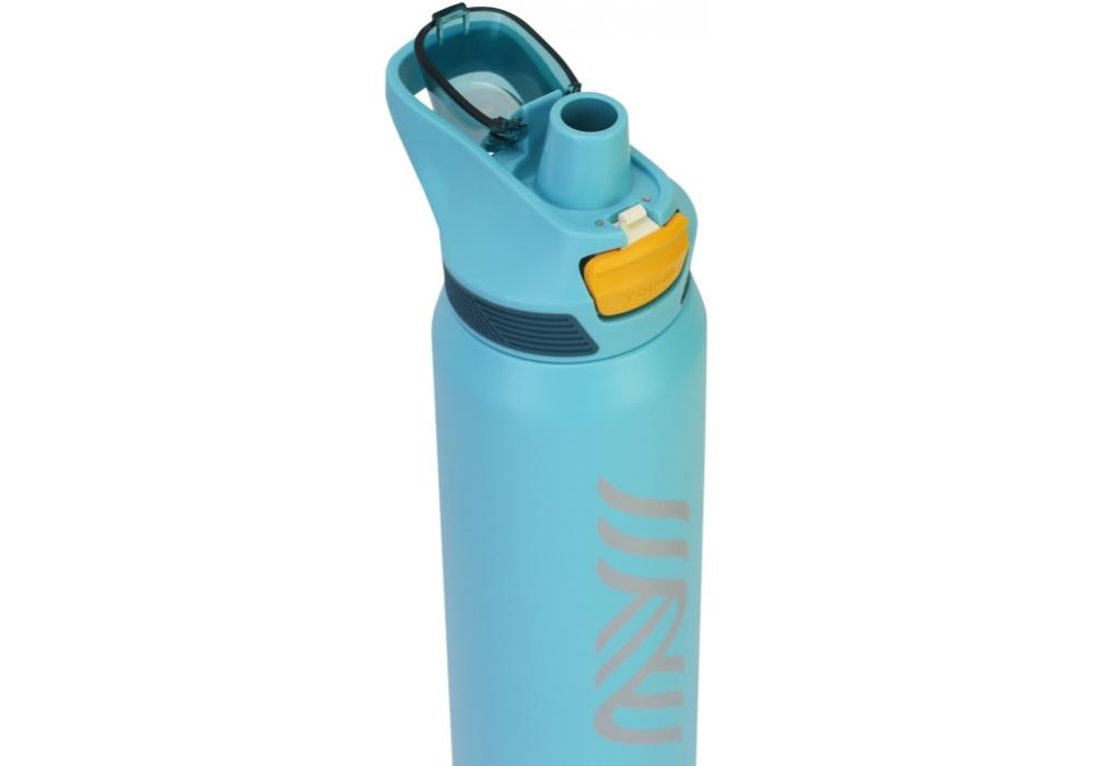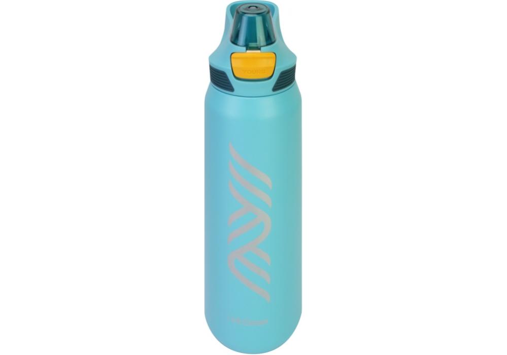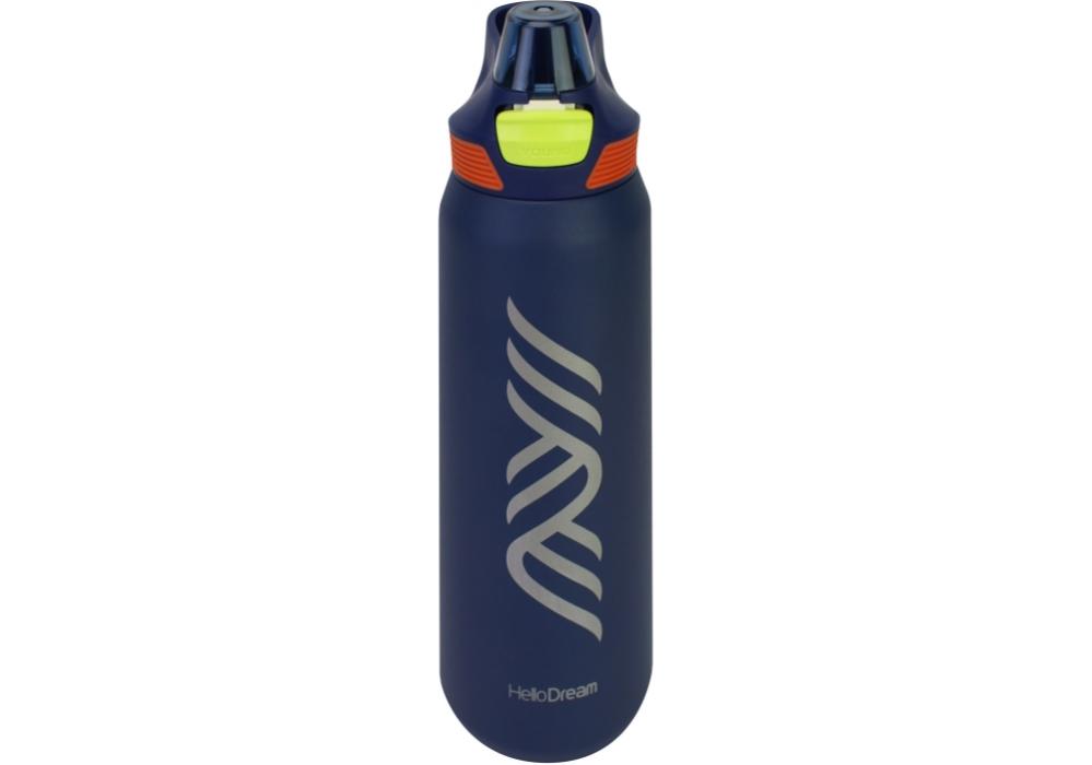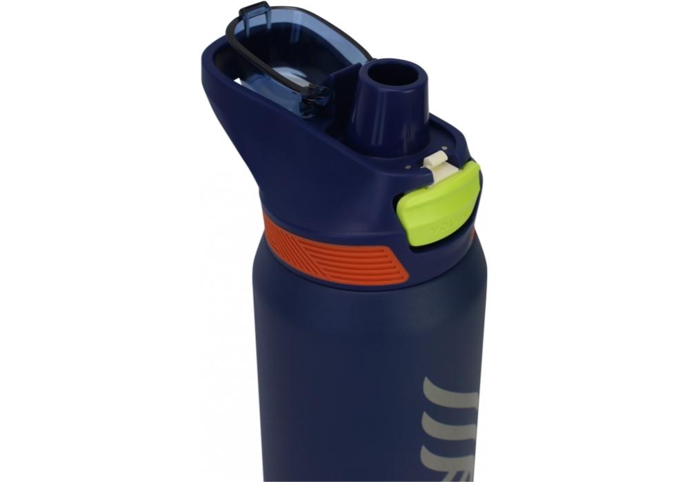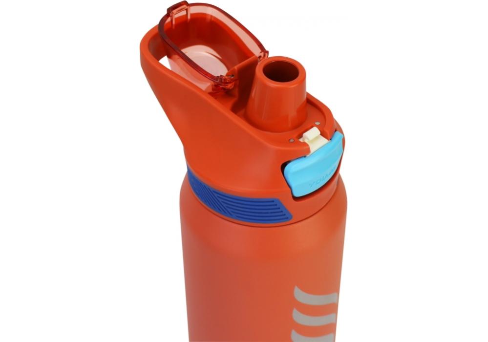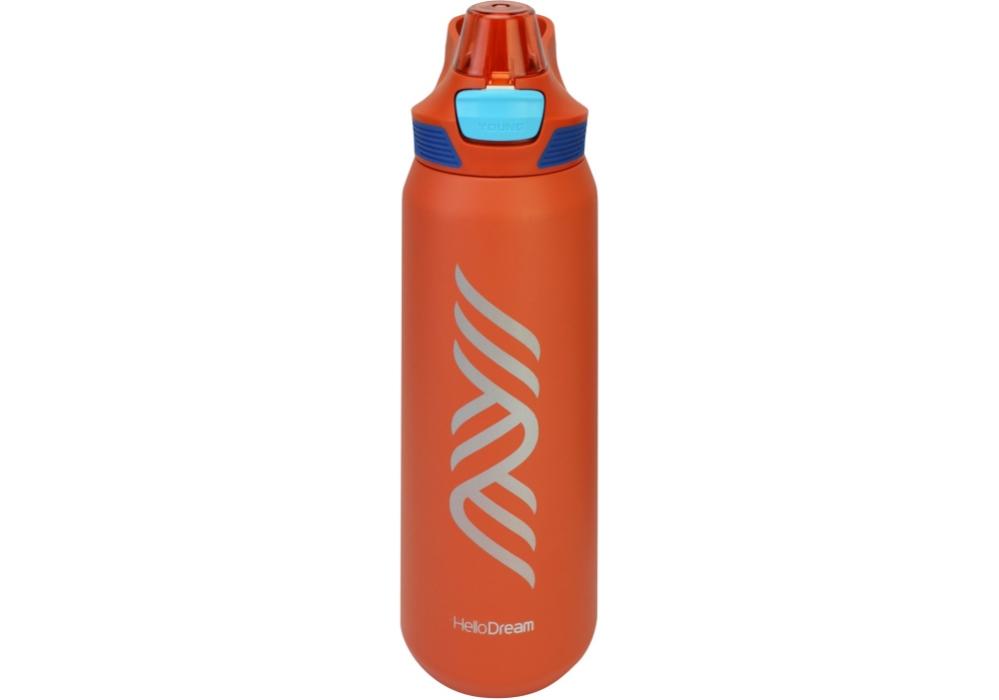 Герметична кришка із запобіжником запобігає проливанню напоїв навіть під час активного руху. Кришку зручно відкривати та закривати однією рукою. Пляшка надійно тримається в руці та здатна тривалий час зберігати температуру напою: гарячі напої залишаються гарячими в межах 45–95 °C до 6 годин, а холодні — довго зберігають прохолоду. Корпус виготовлений з нержавіючої сталі, покриття — поліпропілен і силікон.