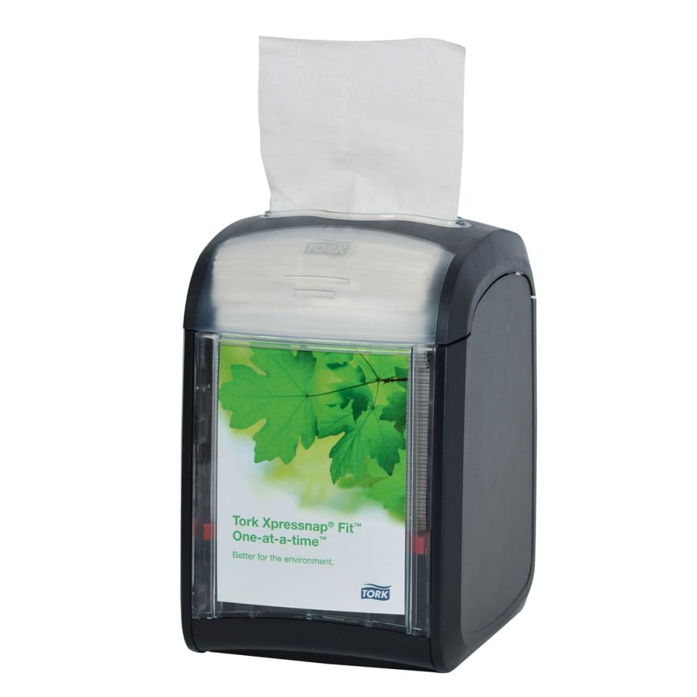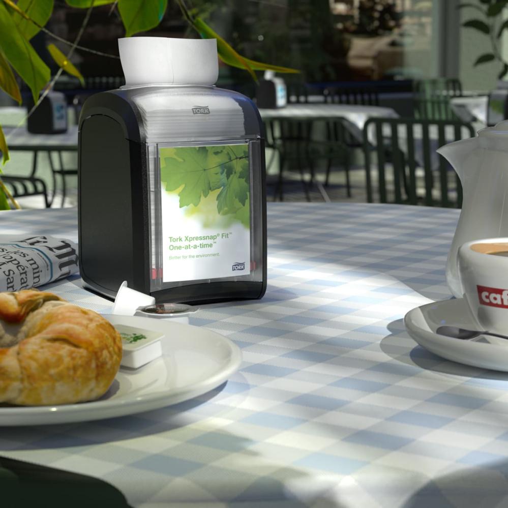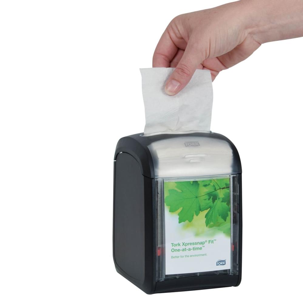 Диспенсери Tork Xpressnap Fit призначені для невеликих мережевих та незалежних ресторанів і можуть використовуватися як на столах, так і на лінії видачі. Модель забезпечує подачу серветок поштучно, що знижує їх витрати та скорочує кількість відходів. На відміну від традиційних диспенсерів, Tork Xpressnap Fit дозволяє обслуговувати більше гостей, економити місце для зберігання запасів та зменшувати кількість невикористаних серветок, що потрапляють на сміття.