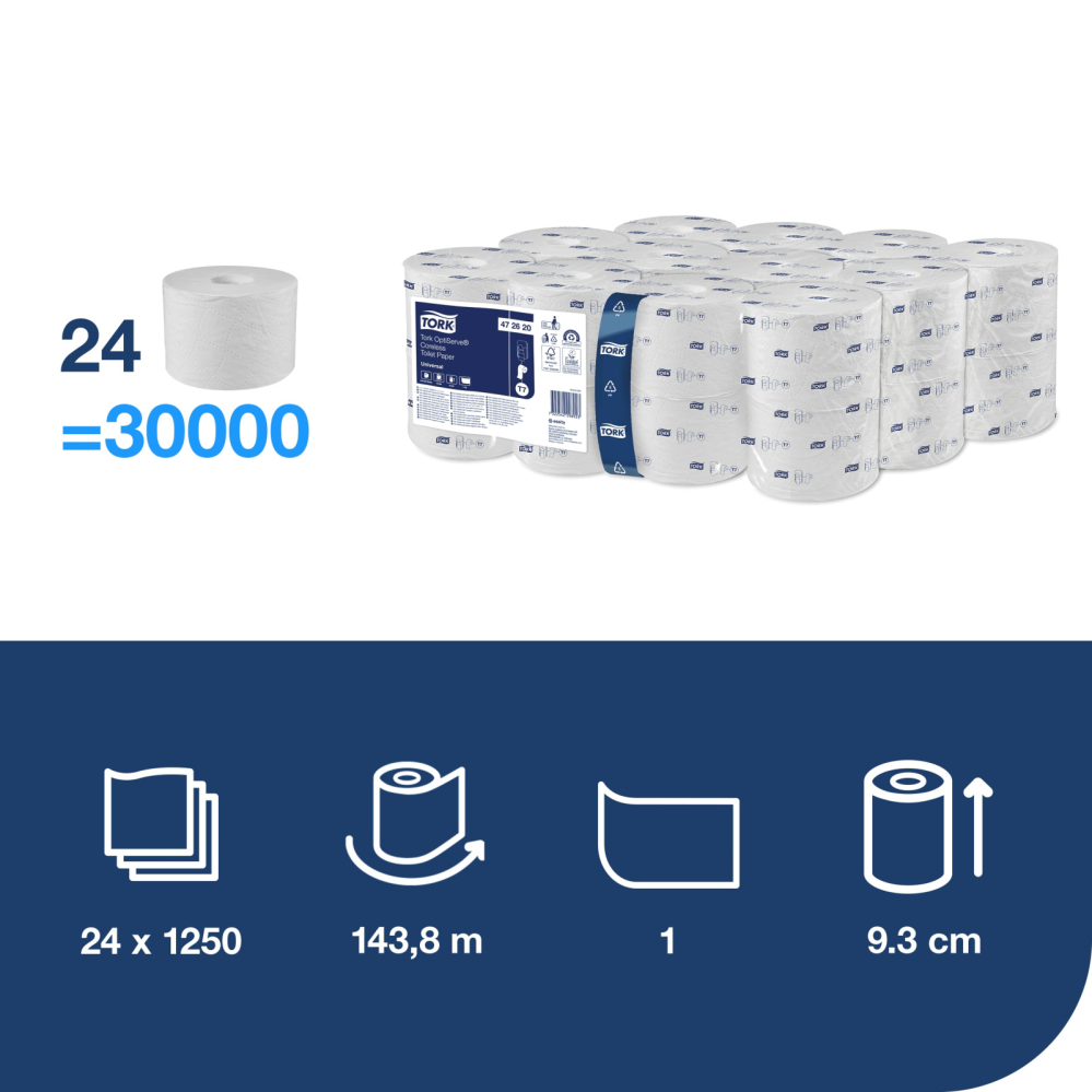 Туалетний папір Tork в рулонах Опті-С 143,8 м 1 шар 1250 аркушів 472620