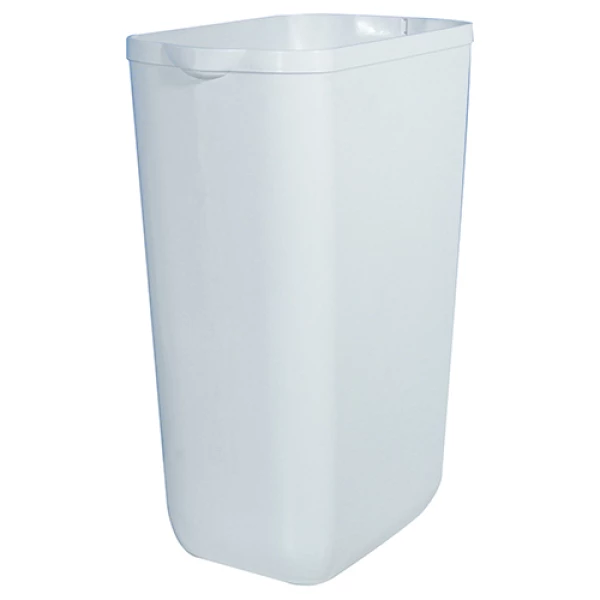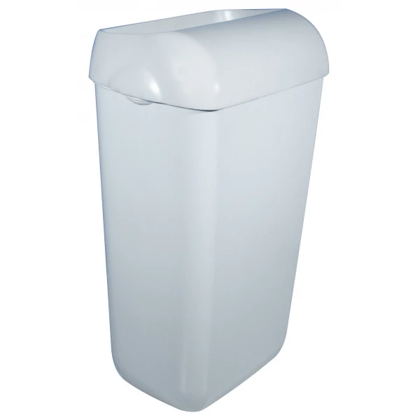Корпус выполнен из прочного, ударостойкого белого пластика, устойчивого к ежедневным нагрузкам и лёгкого в уходе. Урну можно устанавливать как на пол, так и крепить на стену — все необходимые монтажные элементы входят в комплект.