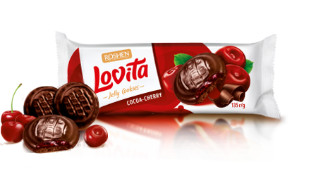 Сдобное печенье Roshen Lovita Jelly Cookies c желейной начинкой какао + вишня ККФ 135г /21шт 4823077636004